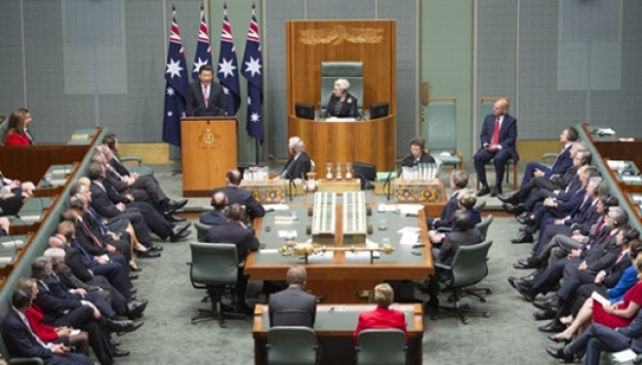 ????這次在澳大利亞,“掌聲響起來”的地方,是堪培拉的標志性建筑——澳聯邦參眾兩院所在議會大廈的眾議院會議廳。演講的聽眾?自然主要是議員先生和女士們啦,還有陪同出席演講的阿博特總理、帕里參議長、工黨領袖肖滕,以及主持人畢曉普眾議長。