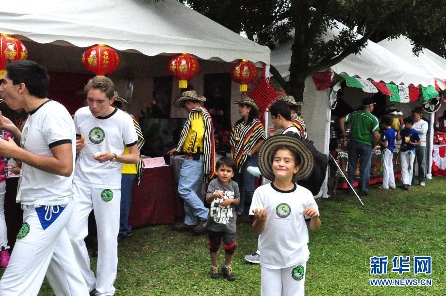 ????小朋友吃著中國(guó)的小麻團(tuán)很開(kāi)心。(新華網(wǎng)記者 梁君茜 攝)