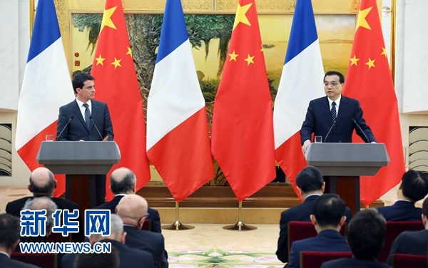 ????1月29日,中國國務(wù)院總理李克強(qiáng)在北京人民大會(huì)堂與法國總理瓦爾斯舉行會(huì)談后共同會(huì)見記者。 新華社記者 姚大偉 攝