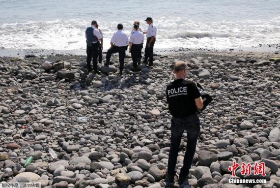 當地時間8月2日,法屬留尼旺首府圣但尼附近的一處海灘上,警員正在現場對金屬殘片進行勘察。