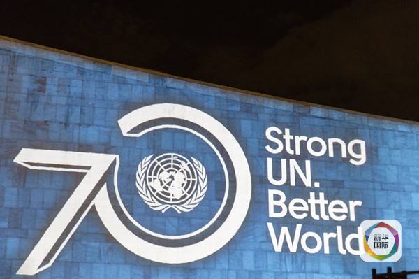 ↑9月22日,聯合國總部大樓外投影顯示可持續發展目標宣傳畫面。(新華社記者李木子攝)