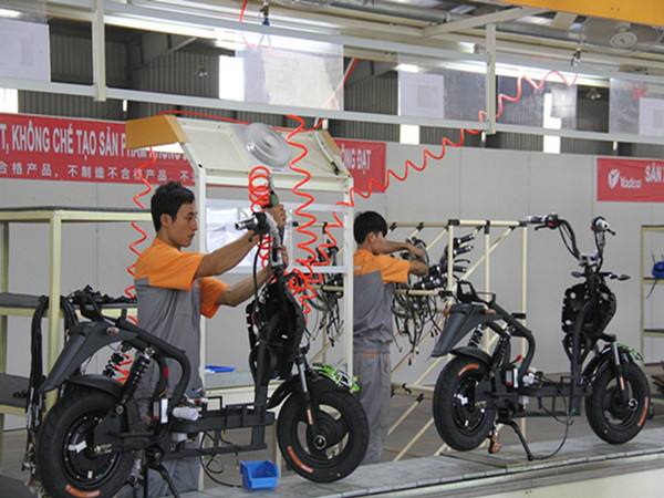 一年前,雅迪科技有限公司(越南)入駐位于越南首都河內的一個工業區。如今,工廠占地已達8000多平方米,月產能達1.2萬輛電動車。