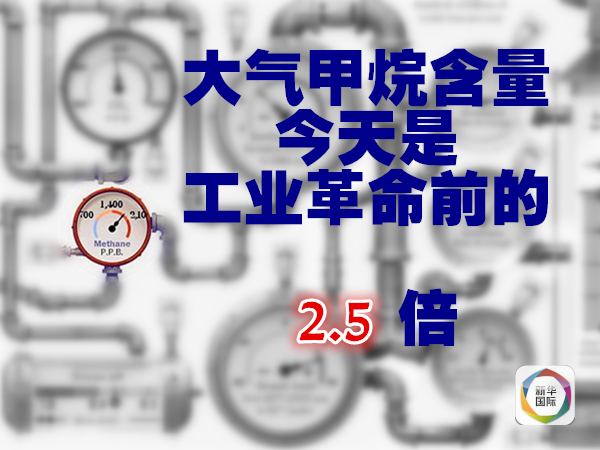 美國(guó)國(guó)家海洋和大氣管理局統(tǒng)計(jì),2014年大氣中甲烷的含量是工業(yè)革命前的2.5倍強(qiáng)。