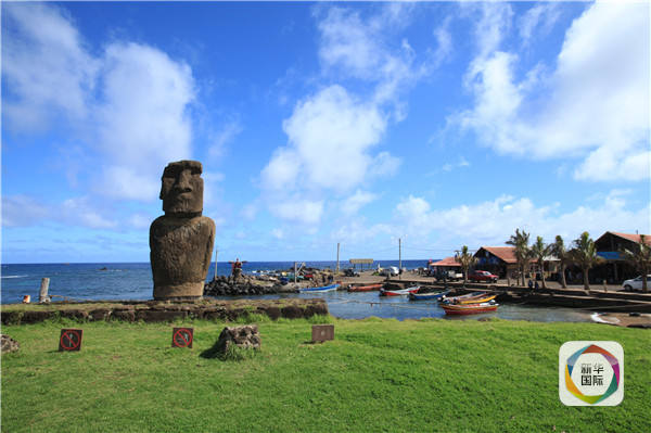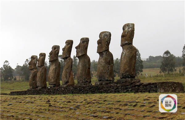 位于復活節島中部的“阿胡阿奇利”巨人石像群。(新華社記者葉書宏攝)