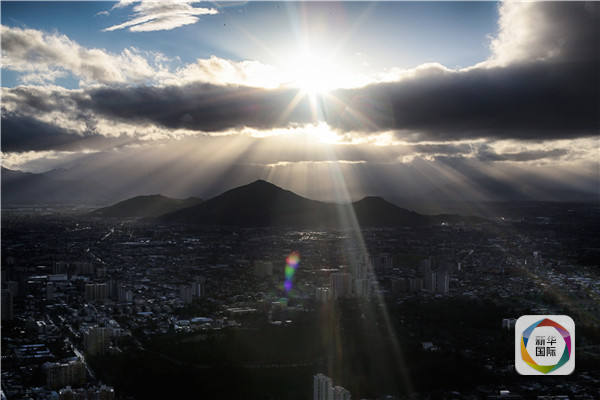 智利圣盧西亞山觀景臺上看到的首都圣地亞哥市貌。(新華社/衛星社)
