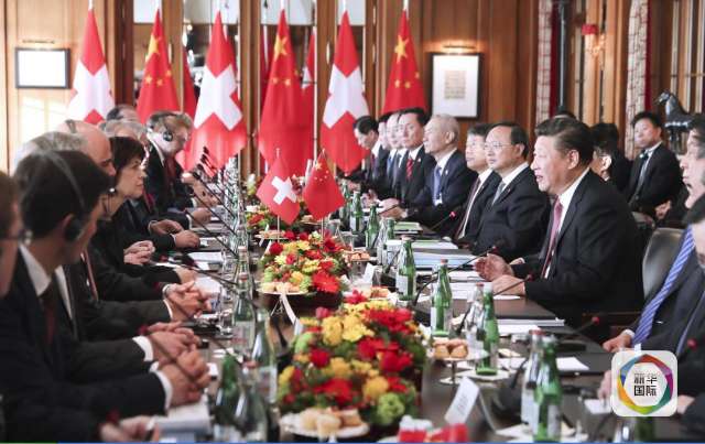1月16日,國家主席習近平在伯爾尼同瑞士聯邦主席洛伊特哈德舉行會談。(新華社記者 蘭紅光 攝)