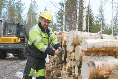 這里是芬蘭芬歐匯川公司的一處伐木場。陪同參觀的該公司森林業(yè)務(wù)部門經(jīng)理米科·韋利坎加斯介紹說,這里的杉木過于茂密,需要間伐以便林木更快生長。
