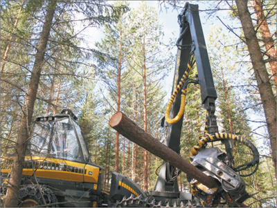 從芬蘭首都赫爾辛基驅(qū)車往北一個多小時,我們的四輪驅(qū)動汽車駛上一條小路。路上積雪越來越多,兩旁的森林也越來越密。循著轟鳴聲,我們看到一臺伐木機(jī)正在作業(yè):一只碩大的機(jī)械手攥住云杉的底部,量直徑、切樹樁、去雜枝、測長度、斷木頭,幾秒鐘的工夫,一氣呵成。