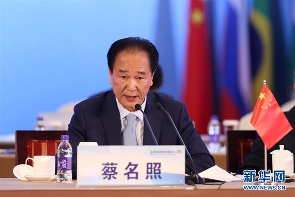 金磚國家媒體高端論壇執(zhí)行主席、新華通訊社社長蔡名照主持開幕式并發(fā)表題為《深化金磚媒體合作實現(xiàn)共建共享共贏》的主旨演講。他指出,論壇的成功舉辦,有助于為今年9月在廈門舉行的金磚國家領(lǐng)導(dǎo)人會晤營造良好氛圍,推動金磚國家合作交流不斷走向深入。