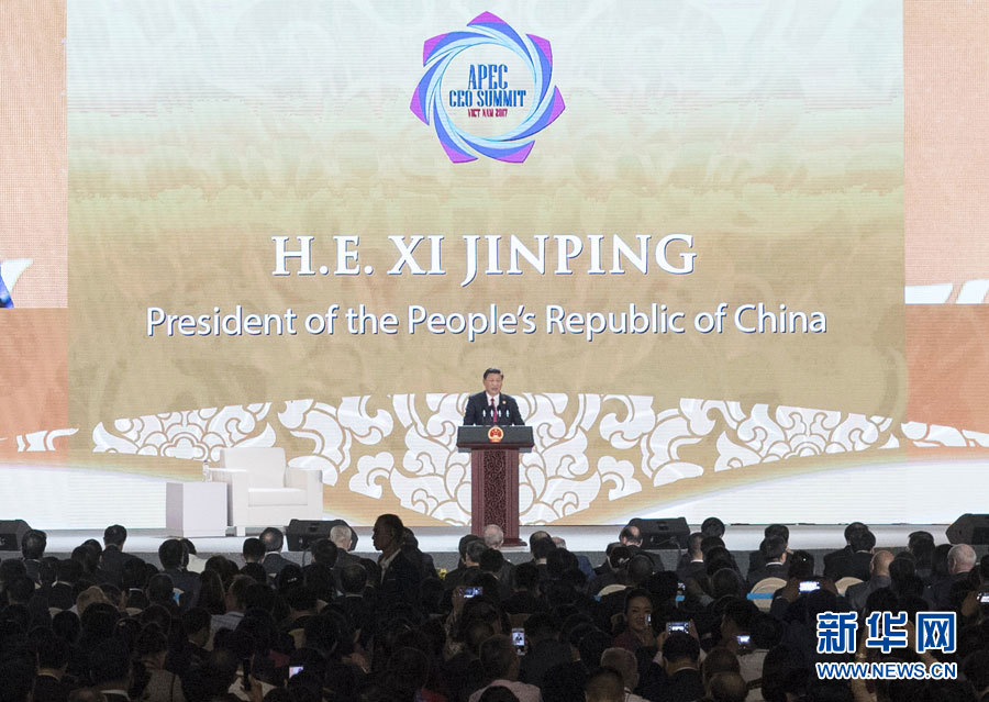 2017年亞太經(jīng)合組織工商領(lǐng)導(dǎo)人峰會(huì)10日在越南峴港舉行。國家主席習(xí)近平發(fā)表題為《抓住世界經(jīng)濟(jì)轉(zhuǎn)型機(jī)遇 謀求亞太更大發(fā)展》的主旨演講。