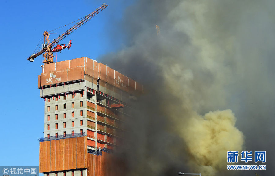 12月25日,韓國水原市,當地一處公寓施工現場發生火災,現場濃煙滾滾。(圖片來源:視覺中國)