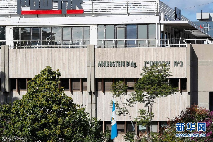 當地時間25日,以色列荷茲利亞,危地馬拉駐以色列大使館。據外媒報道,危地馬拉總統吉米?莫拉萊斯本月24日宣布,危地馬拉決定將本國駐以色列大使館從特拉維夫前往耶路撒冷。(圖片來源:視覺中國)