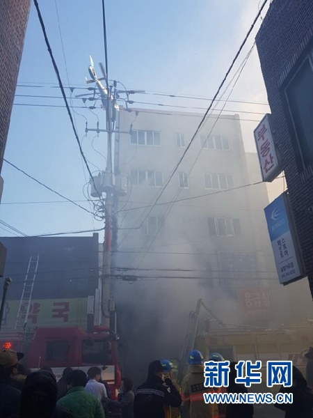 1月26日,在韓國(guó)南部密陽(yáng)市,消防人員在事發(fā)現(xiàn)場(chǎng)展開(kāi)救援。新華社/紐西斯通訊社