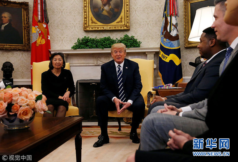 當地時間1月31日,美國華盛頓,美國總統特朗普在白宮與公司雇員討論稅收改革問題。(圖片來源:視覺中國)