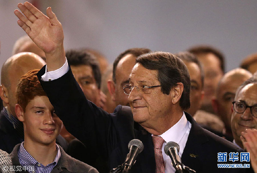 當地時間2月4日,塞浦路斯尼科西亞,塞浦路斯現任總統尼科斯·阿納斯塔夏季斯出席宣告儀式。阿納斯塔夏季斯在總統選舉第二輪投票中獲得56%的選票,成功連任。塞浦路斯實行總統制,總統任期5年。(圖片來源:視覺中國)