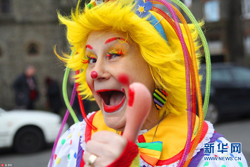 當地時間2月4日,英國倫敦,人們扮成小丑的模樣聚集在圣三一教堂,為英國“小丑之父”約瑟夫-格里馬爾迪(1778-1837)舉辦紀念會。(圖片來源:東方IC)