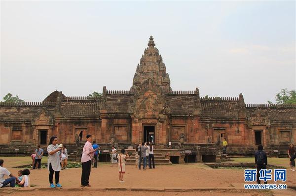 4月3日,在泰國武里南,游客在死火山帕儂隆山頂的古廟游覽。新華社記者楊舟攝
