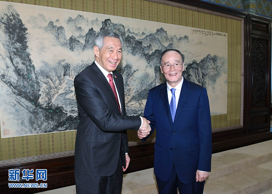 4月9日,國家副主席王岐山在北京中南海會見新加坡總理李顯龍。新華社記者 高潔 攝