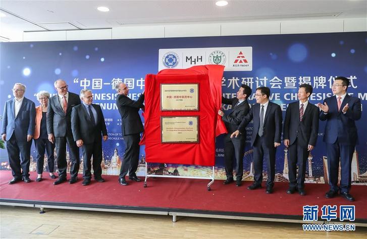 6月8日,在德國漢諾威,嘉賓為中國—德國中醫藥中心揭牌。新華社記者單宇琦 攝