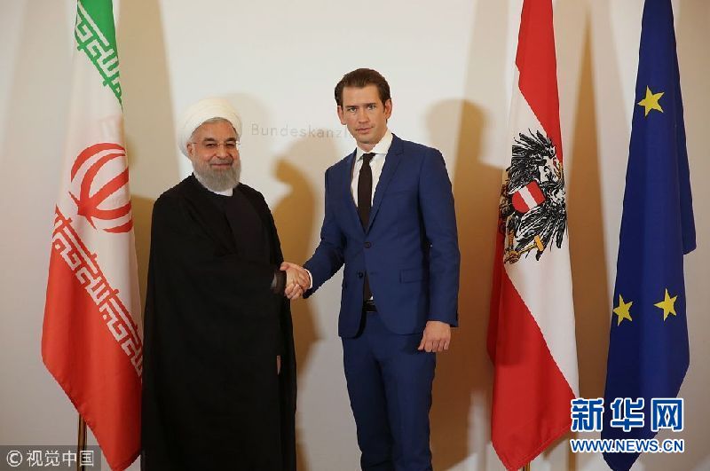 2018年7月4日,奧地利維也納,伊朗總統(tǒng)魯哈尼抵達奧地利進行訪問,會晤奧地利總理塞巴斯蒂安·庫爾茨。伊朗總統(tǒng)魯哈尼2日出發(fā)前往瑞士和奧地利訪問。他這次西歐行將重點討論伊朗核問題全面協(xié)議 (圖片來源:視覺中國)