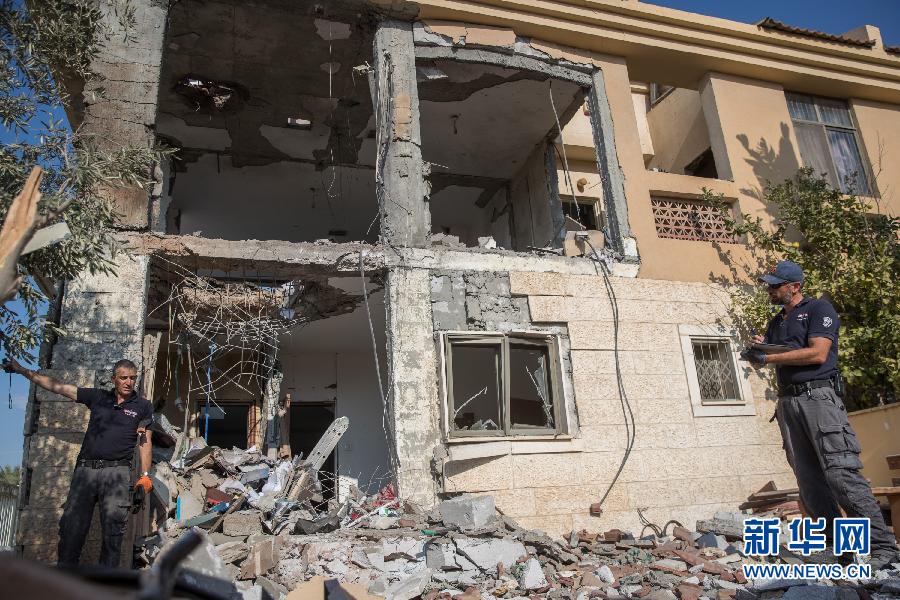 新華社記者從以色列警方獲悉,從加沙地帶發射的一枚火箭彈擊中了以南部城市貝爾謝巴一棟居民樓,房屋嚴重受損。人員傷亡情況尚不清楚。