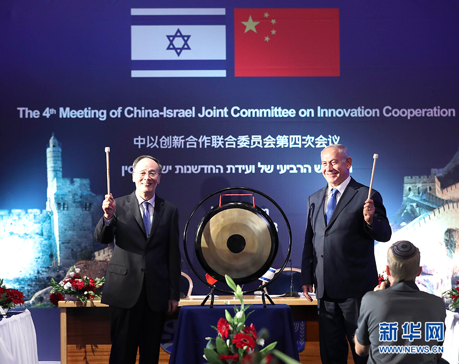 王岐山與內塔尼亞胡共同主持召開中以創新合作聯委會第四次會議。王岐山表示,中以創新合作理念契合、優勢互補、潛力巨大、前景廣闊。近年來,兩國在基礎科學、現代農業、健康醫療、能源等領域的合作成果豐碩。創新永遠在路上,創新合作機制也永遠在路上。希望中以雙方深入總結以往合作的成績和經驗,規劃未來合作的方向和路徑,進一步擴大交流往來,營造有利環境,在不斷發現問題、解決問題中,改進完善聯委會機制,推動兩國創新合作取得更多成果。內塔尼亞胡表示,以色列和中國都是富有創新精神的國家,兩國應在已經取得的合作成果基礎上,開辟新領域,執行新項目,推動兩國創新合作更好地造福兩國人民。會議聽取了兩國有關部門對過去三年雙方在科技、經貿、農業、衛生、交通等領域合作進展情況的報告和對下一階段各領域合作的設想和建議。王岐山和內塔尼亞胡共同簽署《中以創新合作行動計劃(2018-2021)》,并見證了其他7份中以合作文件的簽署。