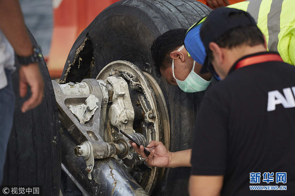 11月3日,印尼雅加達,印尼獅航客機墜海搜救進入第六天,印尼失事客機部分殘骸陸續打撈上岸。印尼國家搜救局2日表示,目前獅航失事客機的起落架、輪胎都已經打撈上岸。同時,遇難者遺體身份確認工作也在進行中。(圖片來源:視覺中國)