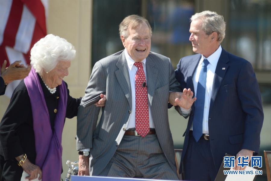 美國前總統(tǒng)喬治·赫伯特·沃克·布什辦公室11月30日晚發(fā)表聲明證實(shí)他于美國中部時(shí)間當(dāng)晚10時(shí)許去世,享年94歲。這是2013年4月25日,在美國達(dá)拉斯,美國前總統(tǒng)喬治·赫伯特·沃克·布什(中)出席小布什總統(tǒng)圖書館落成典禮的資料照片。新華社發(fā)(許迅攝)