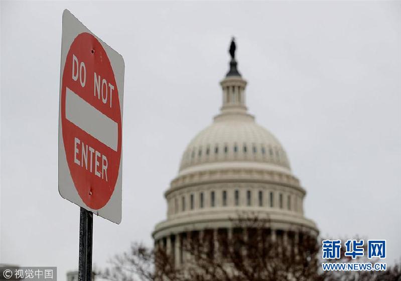 當地時間2019年1月7日,美國華盛頓,美國國會。因美國國會兩黨仍無法就臨時撥款法案和美墨邊界墻問題達成一致,截至7日,美國部分聯邦政府機構的停擺狀態已進入第三周。有白宮高級官員6日透露,由于談判持續僵持,美國總統特朗普現在已經傾向于宣布國家進入緊急狀態。(圖片來源:視覺中國)