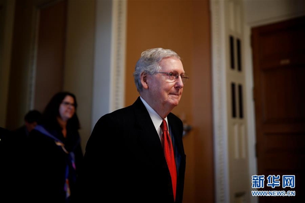1月24日,在美國華盛頓國會山,國會參議院多數黨領袖麥康奈爾前往參議院。新華社發(沈霆 攝)