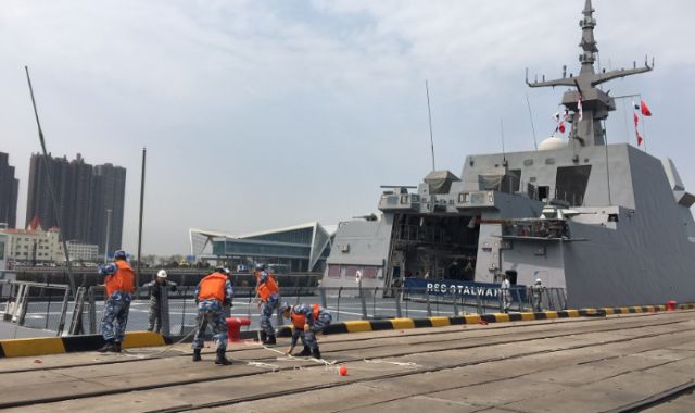19日10時許,新加坡海軍“堅強”號護衛(wèi)艦緩緩駛?cè)肭鄭u大港碼頭。這是參加中國人民解放軍海軍成立70周年多國海軍活動到訪的第一艘外國海軍艦艇。新華社記者梅世雄 攝