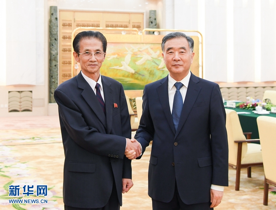 汪洋會見朝鮮祖國統一民主主義戰線中央委員會議長金完洙