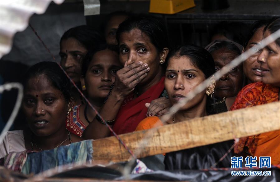 7月2日,在印度孟買,人們聚集在墻體垮塌事故現(xiàn)場。新華社發(fā)