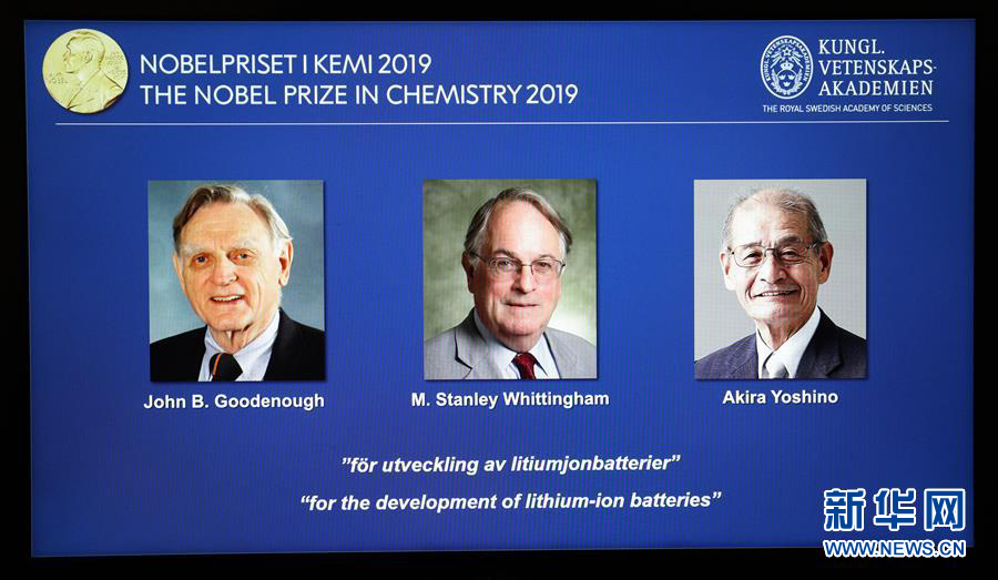 新華社斯德哥爾摩10月9日電(記者和苗 付一鳴)瑞典皇家科學院9日宣布,將2019年諾貝爾化學獎授予來自美國的科學家約翰·古迪納夫、斯坦利·惠廷厄姆和日本科學家吉野彰,以表彰他們在鋰離子電池研發領域作出的貢獻。