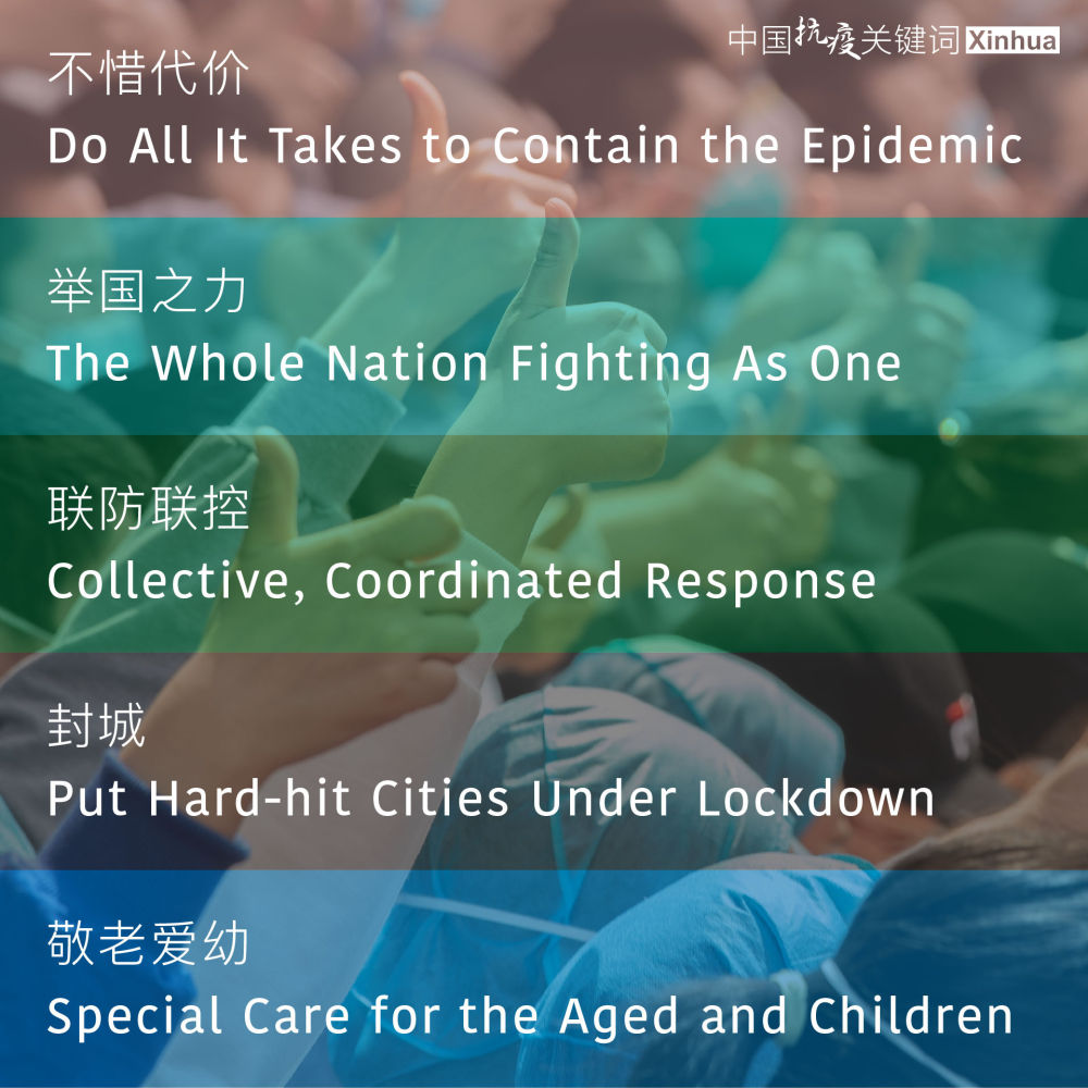 中國實行聯防聯控措施。習近平總書記親自指揮、親自部署,各級黨委和政府堅決服從黨中央統一指揮、統一協調、統一調度。
