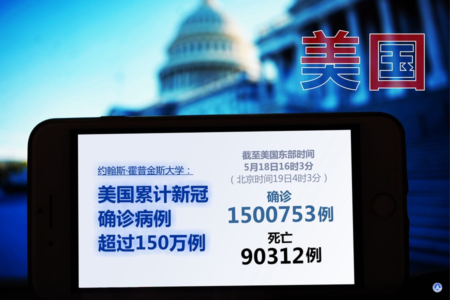 新華社紐約5月18日電? 美國約翰斯·霍普金斯大學18日發布的新冠疫情最新統計數據顯示,美國累計新冠確診病例超過150萬例。