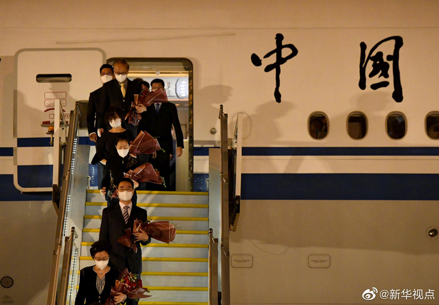8月17日晚,中國駐休斯敦總領事館全體館員乘包機抵達北京,外交部在首都機場舉行簡短莊重迎接儀式。(記者成欣、岳月偉) ????
