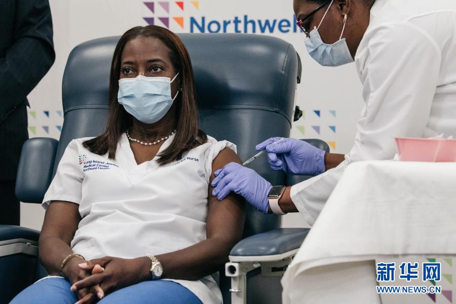 當(dāng)天上午,紐約長(zhǎng)島猶太醫(yī)療中心重癥監(jiān)護(hù)室護(hù)士桑德拉·琳賽最先接種了疫苗,成為紐約州首名疫苗接種者,也是全美首批疫苗接種者之一。