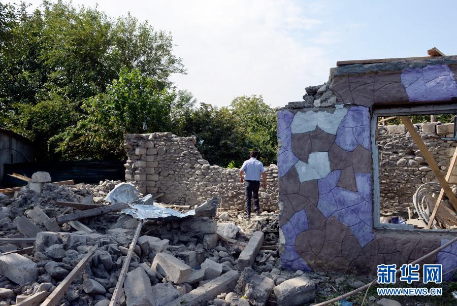 這是9月29日在阿塞拜疆臨近納卡邊境的塔塔爾地區拍攝的在沖突中受損的房屋。新華社發(巴巴耶夫攝)
