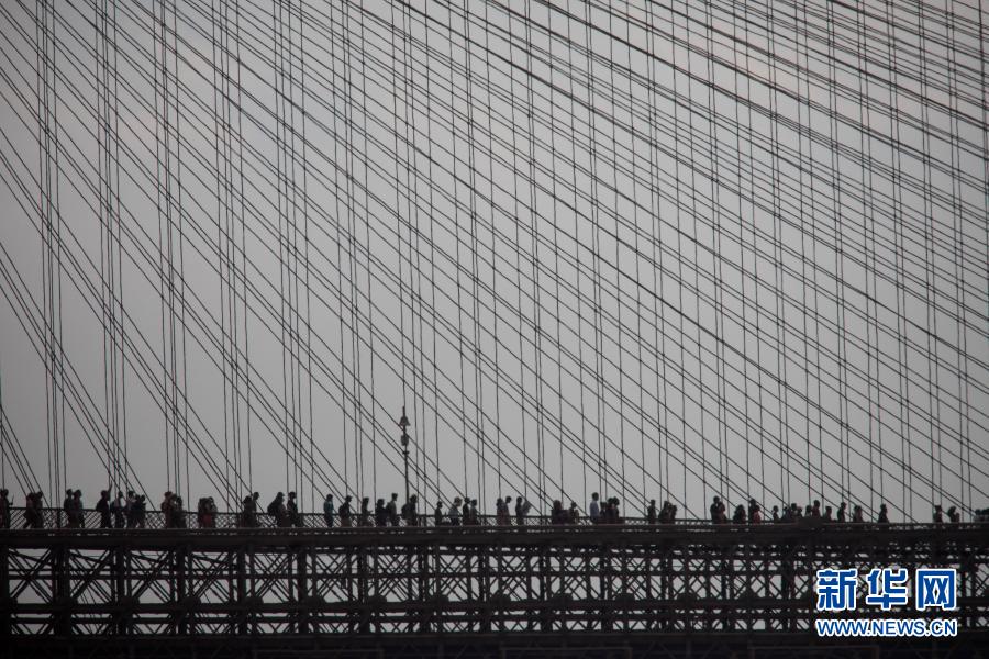 6月6日,抗議警察暴力執法導致喬治·弗洛伊德死亡的示威人群走過美國紐約布魯克林大橋。新華社發(郭克攝)