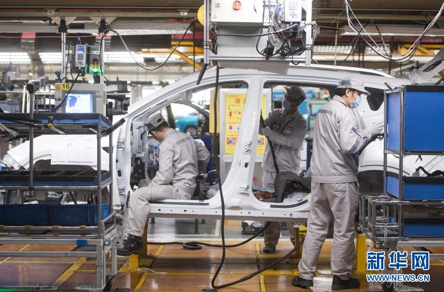 3月24日,工人在湖北武漢東風乘用車公司工廠總裝車間的流水線上作業。3月下旬左右,武漢各企業開始陸續復工復產。新華社記者 肖藝九 攝