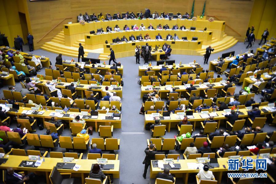 這是2月9日在埃塞俄比亞首都亞的斯亞貝巴拍攝的非盟首腦會議現場。新華社發(邁克爾攝)