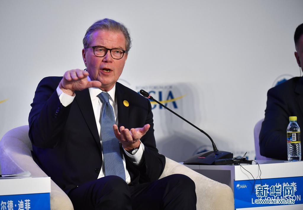 阿斯利康公司董事長雷夫·約翰森在博鰲亞洲論壇2019年年會“‘AI+’時代來了嗎?”分論壇上發言(2019年3月27日攝)。新華社記者 郭程 攝