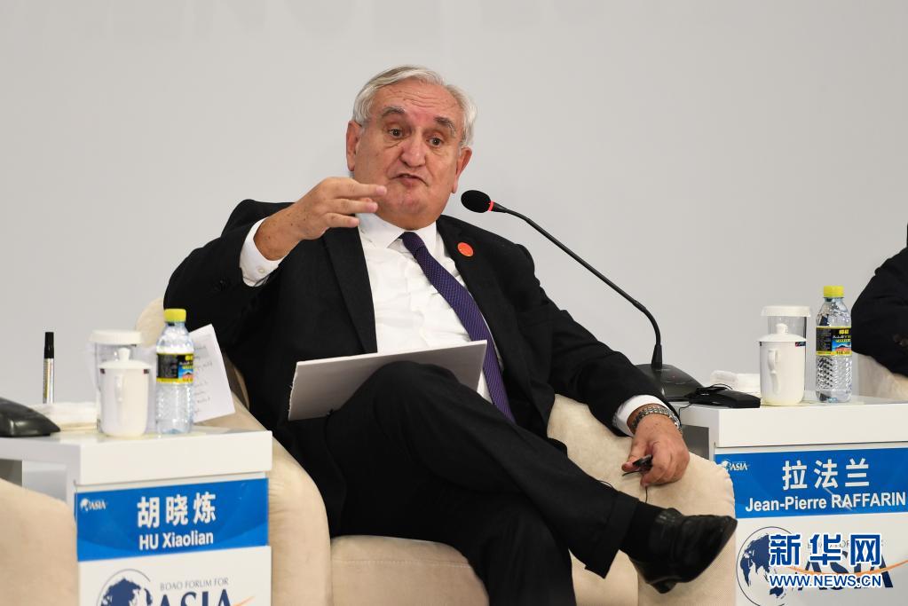 法國前總理拉法蘭在博鰲亞洲論壇2018年年會“改革開放40年:中國與世界”電視辯論上發言(2018年4月10日攝)。新華社記者 楊冠宇 攝