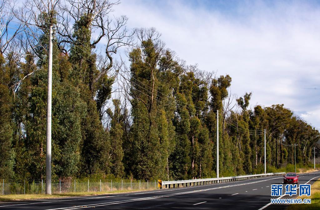 6月1日,在澳大利亞悉尼以西的藍山地區,公路旁遭受2020年夏天山火災害的林地部分植物已經恢復繁茂。