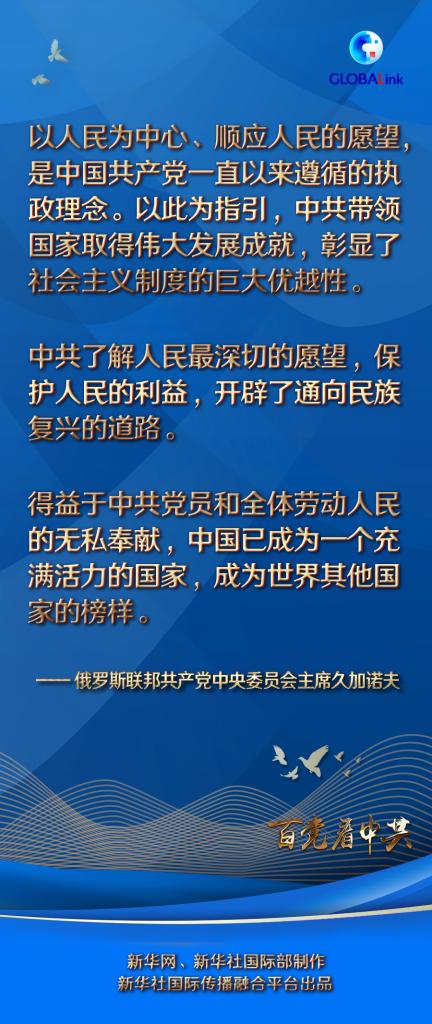 久加諾夫?qū)χ袊?guó)共產(chǎn)黨百年華誕表示祝賀。回顧百年歷程,他表示,中共了解人民最深切的愿望,保護(hù)人民的利益,開(kāi)辟了通向民族復(fù)興的道路。