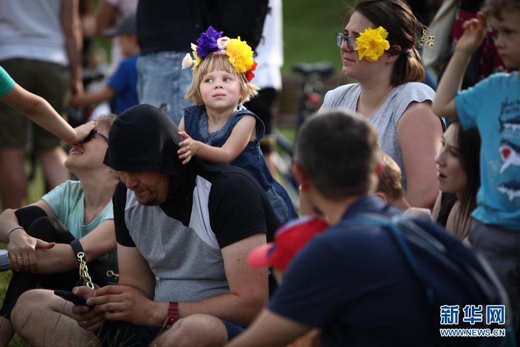 6月26日,兒童佩戴花冠在波蘭首都華沙參加夏日文化娛樂活動。