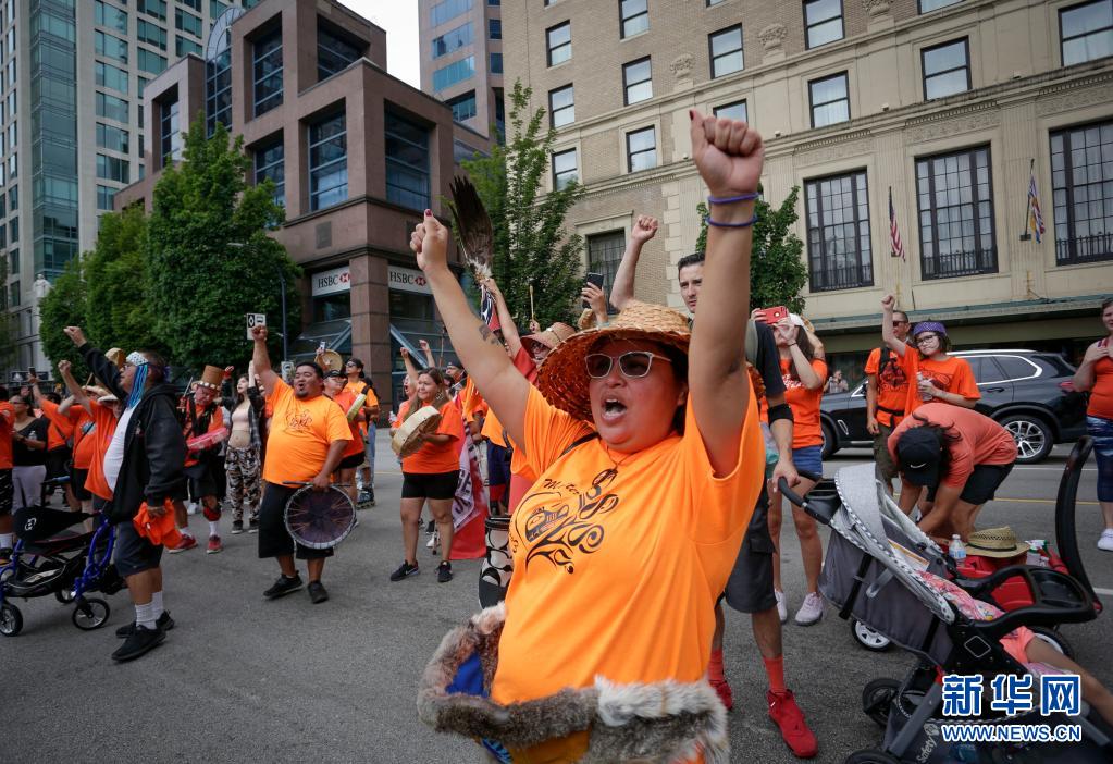 當(dāng)天是加拿大日,上千名抗議者在溫哥華集會(huì),悼念加拿大在強(qiáng)制“同化”原住民過(guò)程中遭到殘害的兒童,呼吁取消加拿大日的慶祝活動(dòng)。